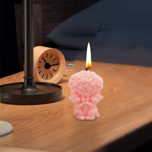 Aromatherapy Candle Floral, Bear Aromatherapy Candle, Scented Candle for Valentine'S Day, Bear Hugging Flower Scented Candle, Soy Wax Candle